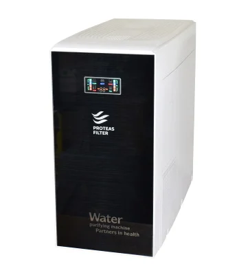 Компактен RO систем со 5 фази – 12L/час Компоненти: 3 претфилтри: гранулиран активен јаглен 10”, активен јаглен блок 10” – 5μm, полипропилен 10” – 1μm Мембрана 75 GPD (0,0001 μm] In-line гранулиран активен јаглен филтер (GAC] Пумпа 75G Вграден резервоар 5L LED екран со индикатори: Check, Flush, Purify, Source, Full Главни функции: • Отстранува цврсти честички, талози, хлор, органски супстанции и пестициди • Подобрува вкус и мирис на водата • Мембраната ја отстранува тешката контаминација (олово, бариум, хром, живо, натриум, кадмиум, флуор, нитрит, нитрат, селен] • LED екран ја прикажува функционалноста и спроводливоста на водата • Лесна инсталација и одржување Димензии (ВxШxД]: 43,0 x 21,5 x 44,5 cm Пакетот вклучува: сет филтри, клуч и сите потребни додатоци за поврзување