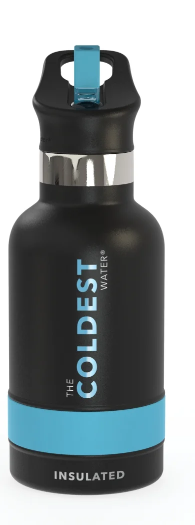 Термос од не’рѓосувачки челик 355ml (21oz] за деца со слама во црна боја со сини значки